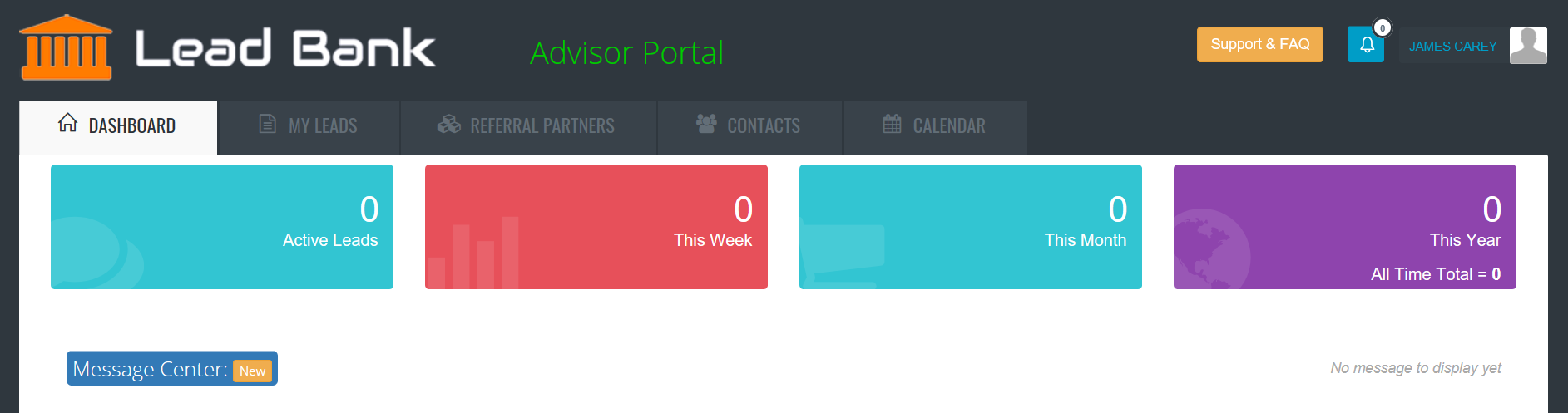 *This what your dashboard looks like for a brand new account – there hasn’t been any information added yet.