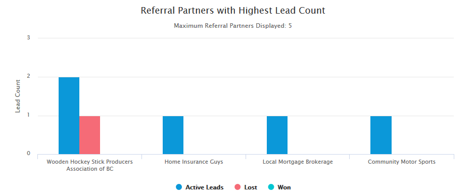 In the live view – you can rollover the bars to see the actual number of active won and lost leads by referral partner.